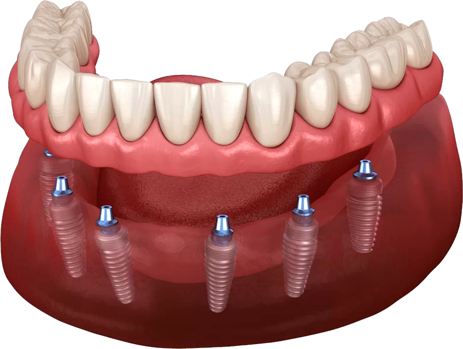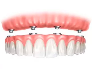 Ela é uma prótese removível, de todos os dentes, que tem uma retenção maior do que uma prótese convencional (dentadura), pois é fixada sobre os pinos de implante dando maior segurança ao paciente.